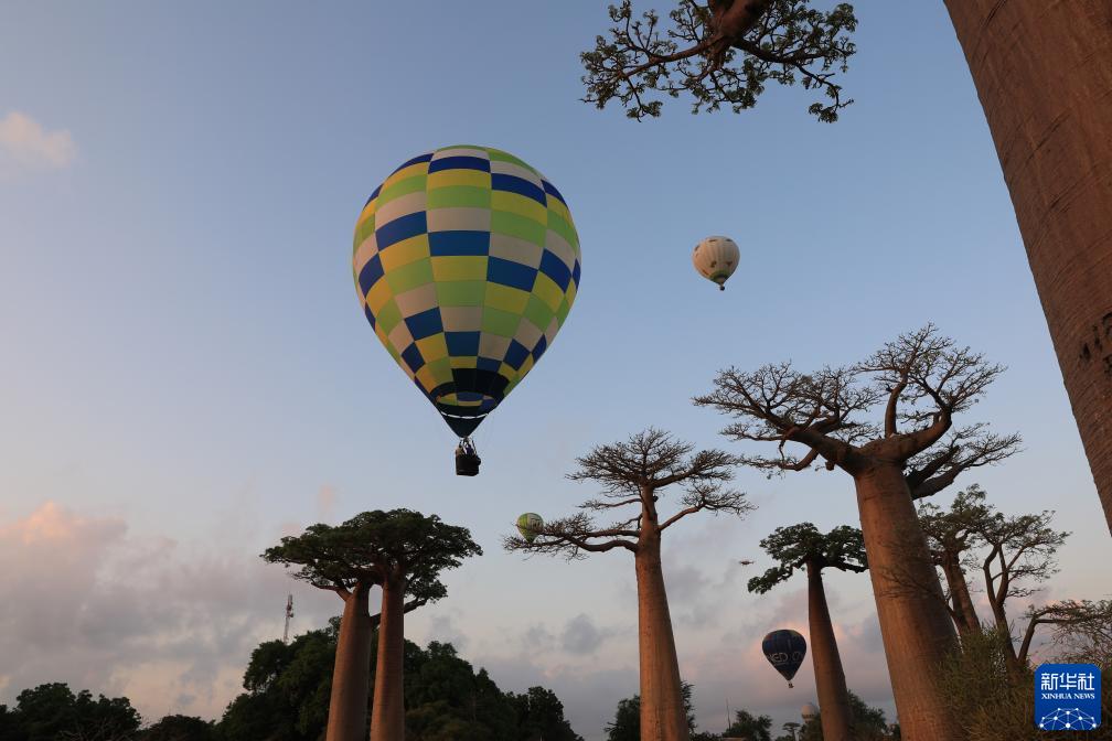 當(dāng)日,在馬達(dá)加斯加穆龍達(dá)瓦猴面包樹(shù)大道,來(lái)自瑞士、法國(guó)等國(guó)的熱氣球旅行愛(ài)好者于日出時(shí)分乘坐熱氣球升空。猴面包樹(shù)與熱氣球構(gòu)成了一道獨(dú)特的風(fēng)景。