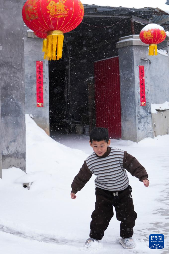 2月21日,山東省鄒平市西董街道東峪村一名小朋友在家門口的雪地里玩耍。