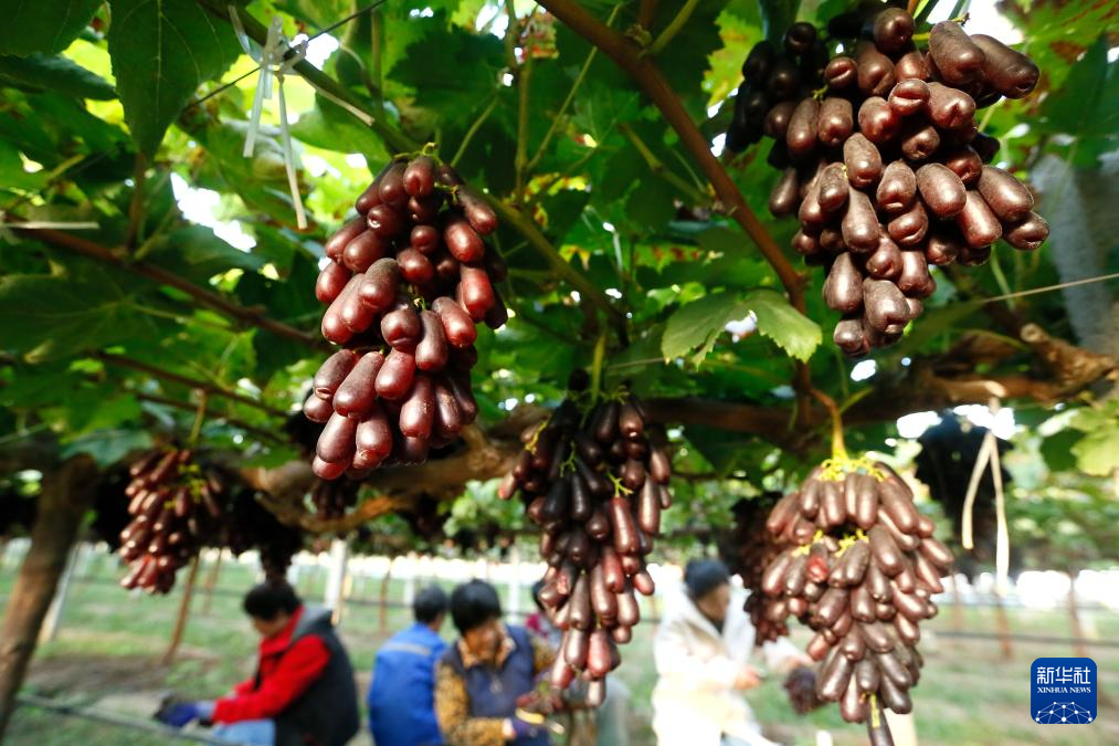 10月4日,山東省青島市即墨區(qū)金口鎮(zhèn)一個(gè)葡萄種植基地的果農(nóng)在分揀葡萄。