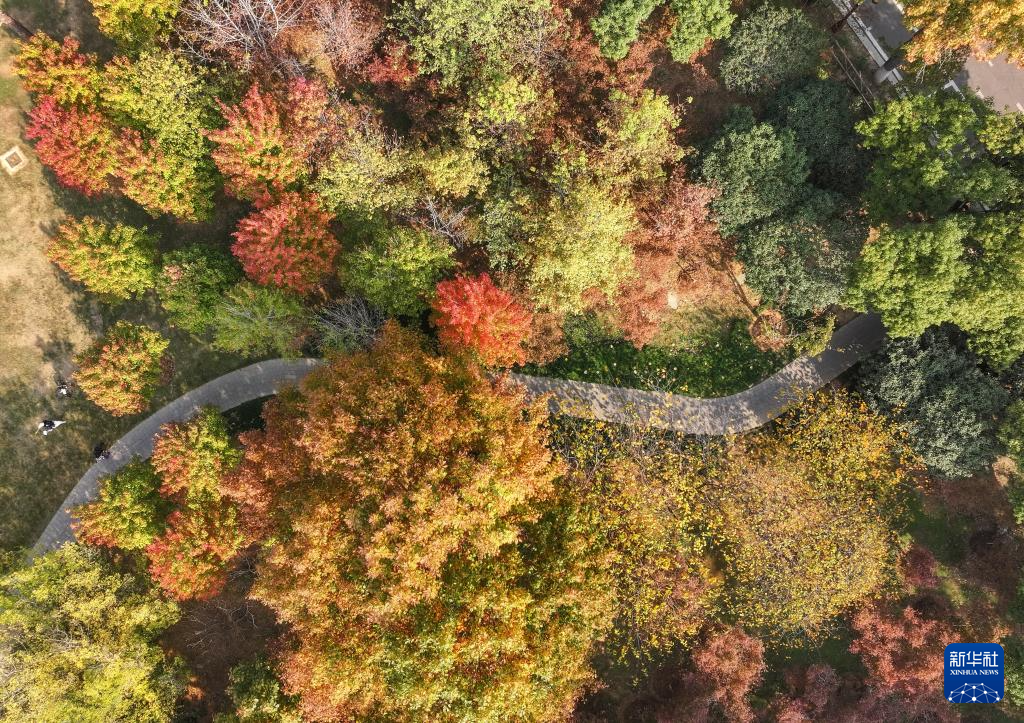11月14日,游人在武漢市東湖風(fēng)景區(qū)游覽(無人機(jī)照片)。