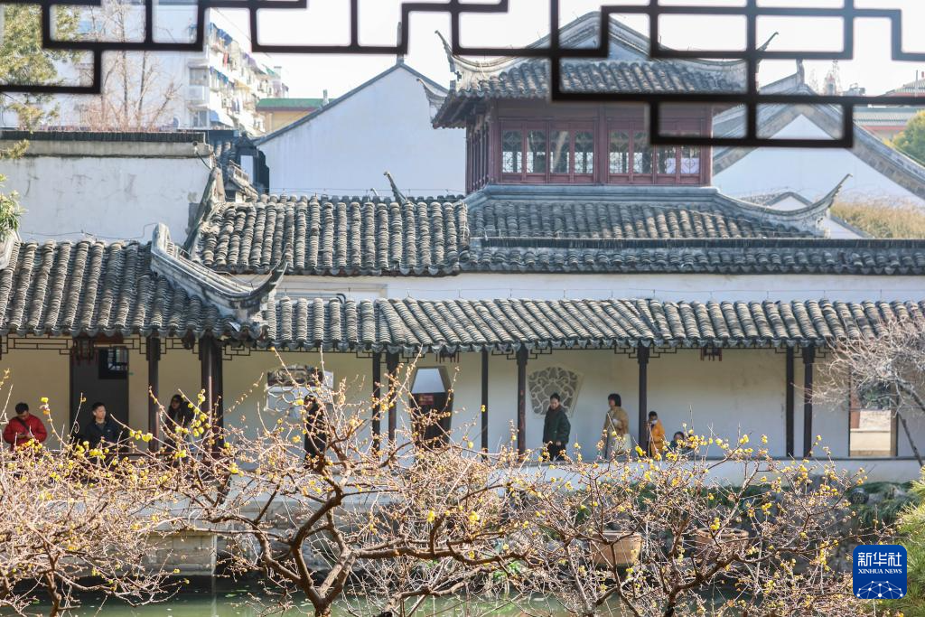 1月5日,游客在江蘇省南京市瞻園觀賞臘梅。