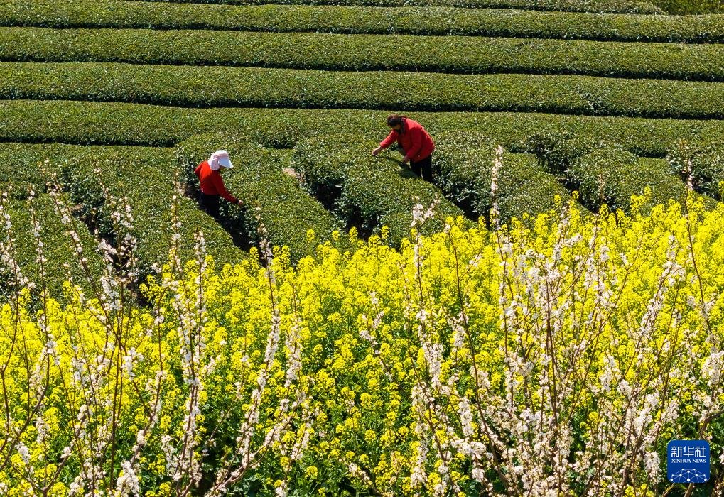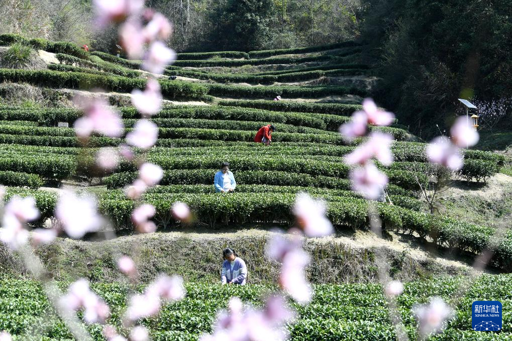 3月18日,茶農(nóng)在湖北省咸寧市通城縣四莊鄉(xiāng)寺背村臥龍溝生態(tài)有機(jī)茶業(yè)專(zhuān)業(yè)合作社采摘茶葉。