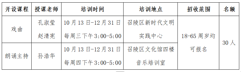 為進(jìn)一步提升公共文化服務(wù)質(zhì)量,推進(jìn)全民藝術(shù)普及,提高全民藝術(shù)文化水平,展示新時(shí)代召陵發(fā)展的新實(shí)踐新作為新形象,現(xiàn)計(jì)劃面向全區(qū)招收2025年公益培訓(xùn)班學(xué)員,名額有限,歡迎咨詢(xún)報(bào)名,具體安排如下: