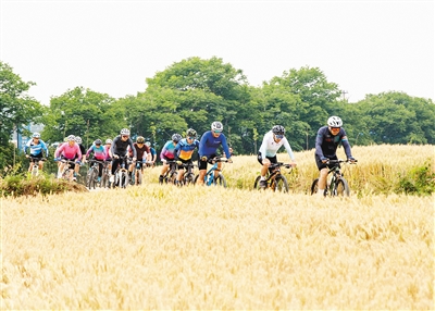 五月的沙河國(guó)家濕地公園碧水環(huán)繞、綠樹成蔭,處處鳥語花香,充滿了自然之美。一輛輛自行車在田間小路和林蔭小道中排成一條快速行進(jìn)的直線,選手們嗅著麥香,你追我趕、肆意馳騁。
